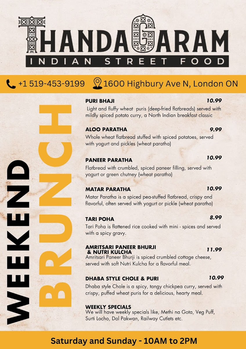 Step into Thanda Garam, located at 1600 Highbury Ave N, London, ON, where the vibrant essence of Mumbai street food comes alive. The menu is a delightful homage to traditional Indian flavors. Highlights include the Cheese Burst Vada Pav, crispy and indulgent, and the Paneer Schezwan Frankie, bursting with spice. For sandwich lovers, the Paneer Cheese Burst Sandwich and the Masala Toast Sandwich are must-tries, offering both taste and comfort.